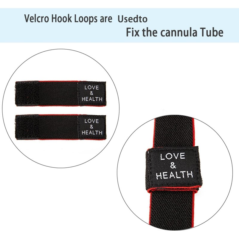 - Velcro Loops - The headband comes with two velcro loops and foam protection for fixing and adjusting the cannula tube. They can slide on the headband and keep the cannula tube stay away from ears, preventing irritation caused by plastic tubing.