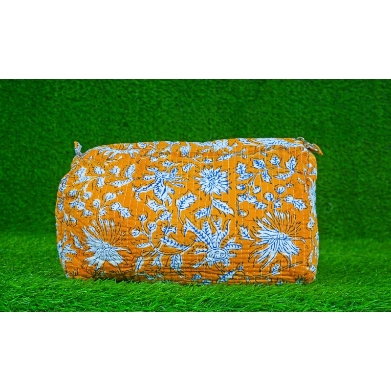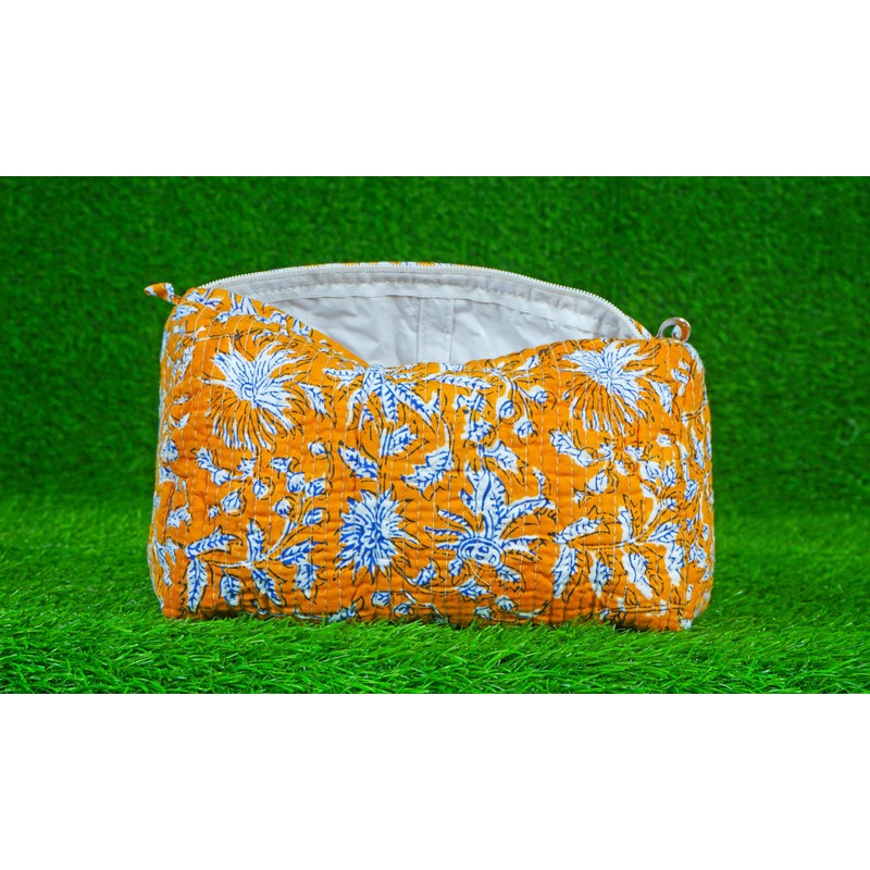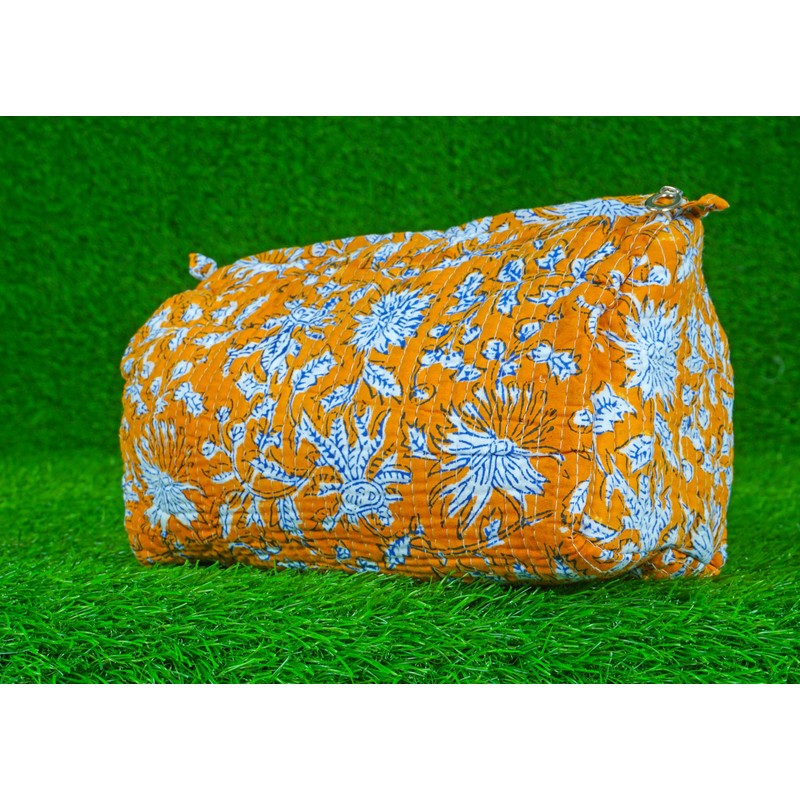 Generic Pieces Indian Handmade Cotton Quilted Handmade Floral Hand Block Print Toiletry Bag,Cosmetic Pouch Bag Makeup Bag For Women (1, Orange C), 85485