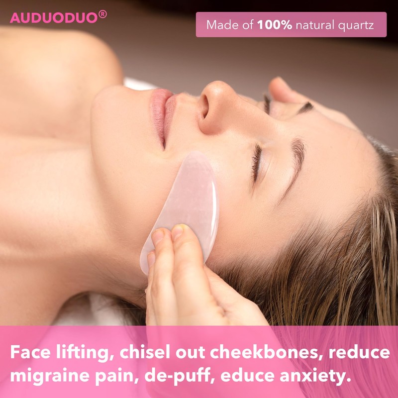 - Dual-Purpose: This pink crystal roller combines the benefits of a jade roller and gua sha tool for facial massage and lymphatic drainage.