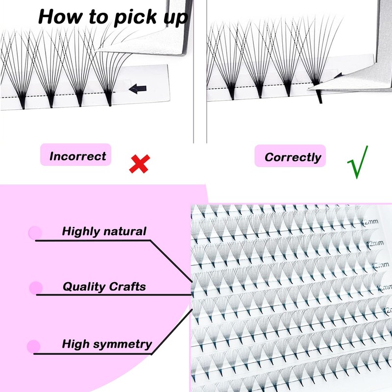 - PRODUCT SPECIFICATIONS: Premade lash fans, 3d 6d 8d 10d 12d, C/D curl, the thickness of the lashes is 0.05/0.07, the length of the lashes is a mix of lengths from 8-15mm, there is always one for you!