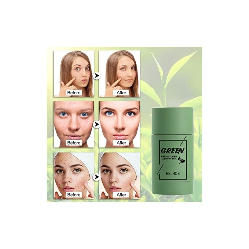 Generic Purifying Clay Stick Portable Pores p Sing Oil Control F - Round Stick, 1 Count (Pack of 1), Green