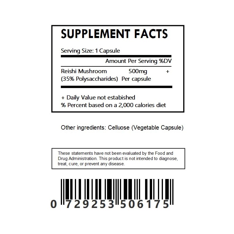 Generic Reishi Mushroom Extract 10:1 Capsules - 60