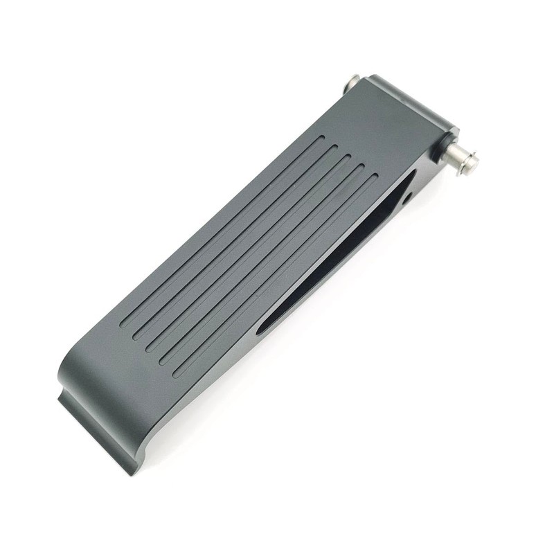 - The weak aluminum pivot pin has been replaced with a custom machined 304 stainless steel pin.
