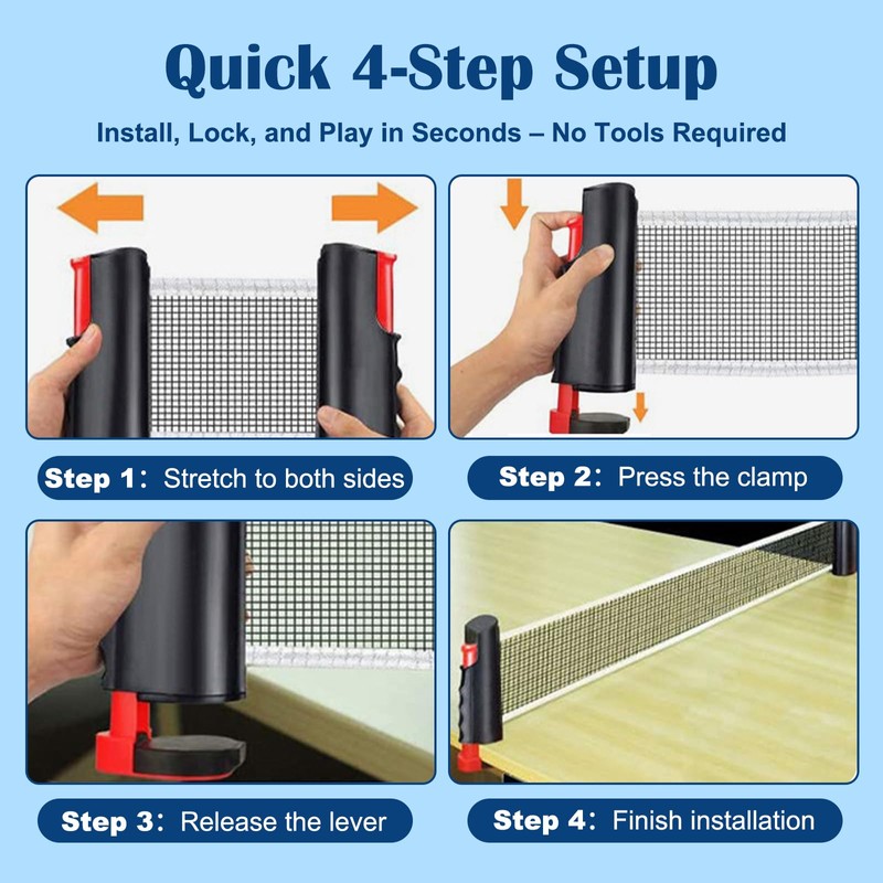 • Flexible Table Fit - Retractable net expands up to 72" wide and fits tables up to 2" thick, easily adapting to dining tables, desks, and outdoor picnic tables