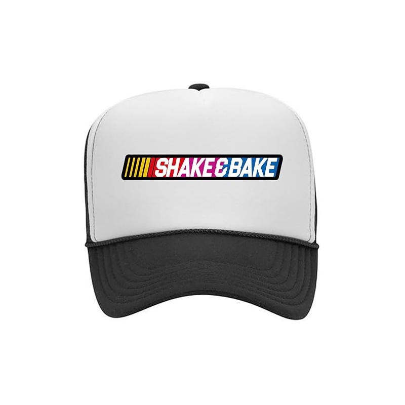 Generic Ricky Bobby Racing Shake N Bake Foam Trucker Mesh Snapback Curved Bill Hat Cap Black & White Printed, 0-8