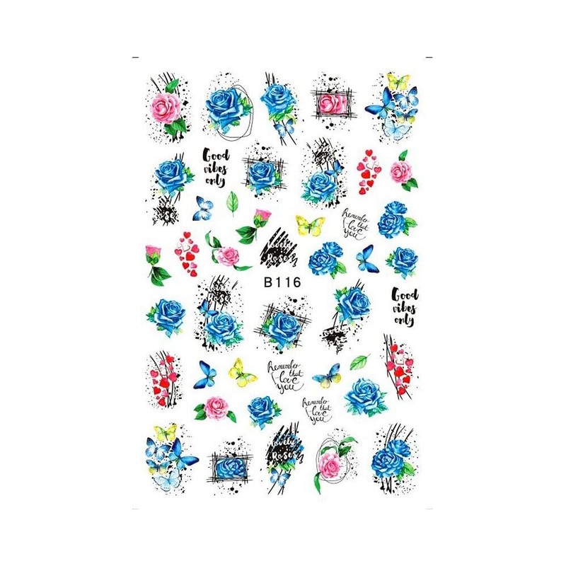 Generic Rose Daisy Heart Love Flower Nail Sticker Geometric Stripes Line Leopard Print B116 Nail Wraps Art Stickers Manicure Supplies for Women for Home Nails Full Long Lasting Easy Apply and Remove