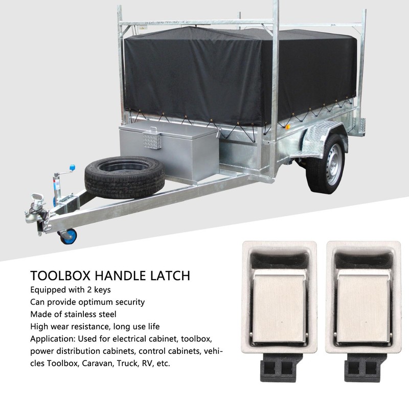 Generic Stainless Steel Toolbox Latches, 2 Pack, Silver, 43x28mm / 1.69x1.10in, Heavy Duty Flush Mount Handle Latch for RV Boat Trailer, Toolbox, Electrical Cabinets