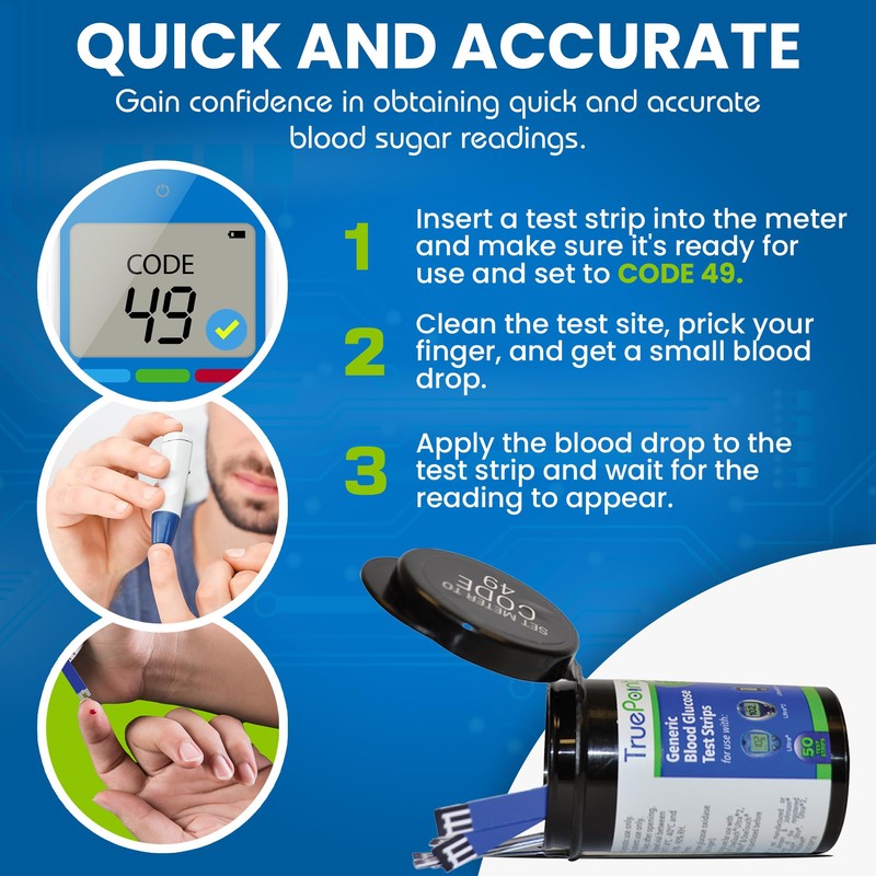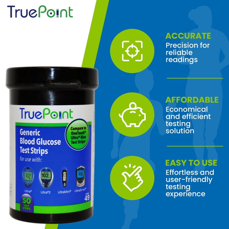 - Each Box Contains 50 TruePoint Blood Glucose Test Strips (Meter NOT Included)
