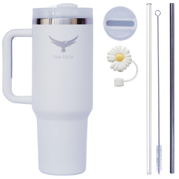 Generic Tumbler Stainless Steel Vacuum Insulated Travel Mug 40oz with Lid and Straw+Cap,stanely Cup,2024 New Technology, Unbreakable Mug, Leak-Proof, BPA Free, Hot or Cold Drinks. (White), Large