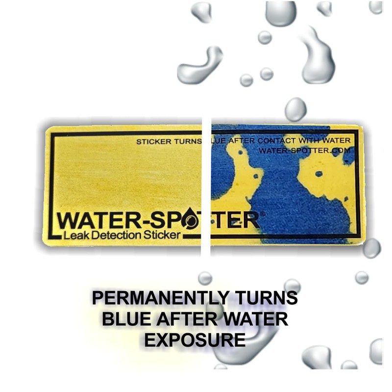 Water-Spotter finds intermittent and hard-to find leaks easily! Just place the self-adhesive, water-sensitive sicker anywhere there is a suspected leak. Anywhere water contacts the sticker will change irreversibly from yellow to blue in seconds.