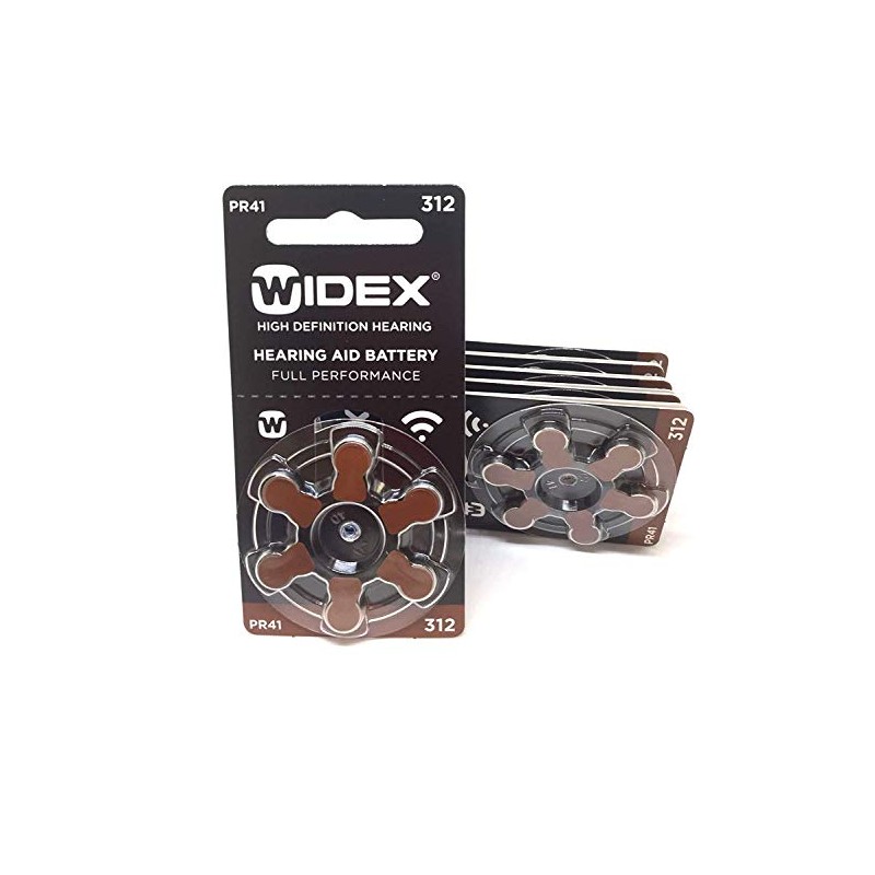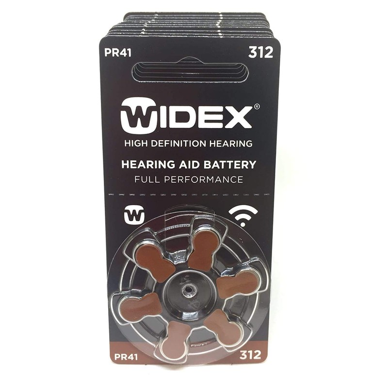 1Hearing Aid Battery Brand -- Widex Number -- W312 Model number --PR41 Made in Denmark. Widex is the largest hearing aid manufacturer company in world having business in more than 140 countries. The Widex Batteries for Hearing Aids are coded with colour for size identification and are zinc air batteries.