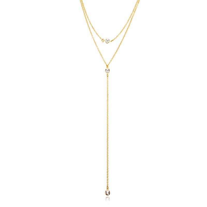 Generic Women's Boho Layered Crystal Y-Shaped Necklace, Golden, One Size