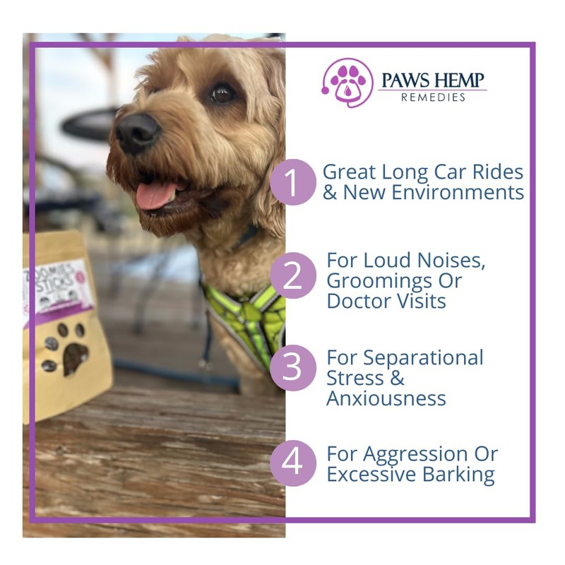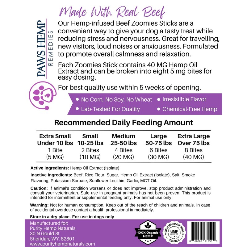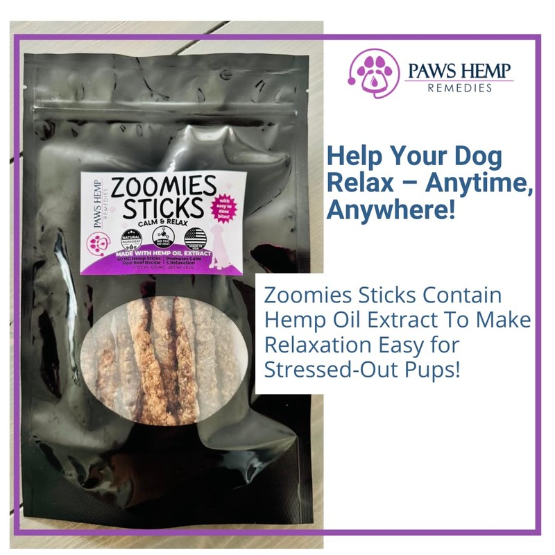 Generic Zoomie Sticks | Hemp-Infused 100% Beef Jerky Sticks. Great for Travelling, New Visitors, Loud Noises or Anxiousness. Give Your Dog a Tasty Treat to Promote Calmness and Relaxation.