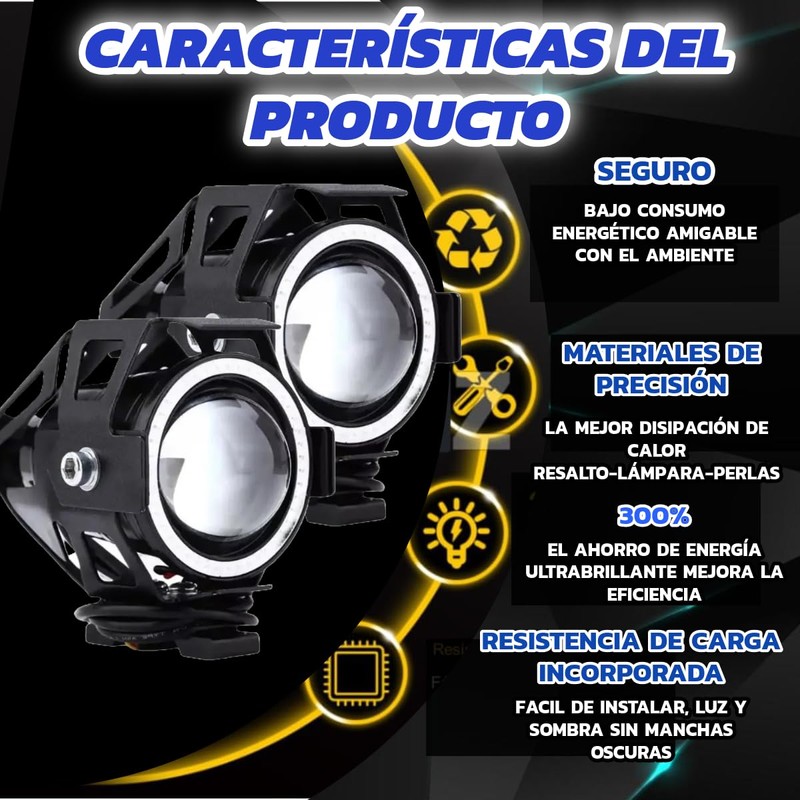 - 【PAQUETE INCLUYE】2 Faros de angel, 2 bases para posicionar los focos, 2 Accesorios de instalación. Voltaje de 12V. Fuente de Luz: LED. Lúmenes: 1200lm por faro. Alcance de la luz: 200m. Rangos de temperatura: -40 a 40 grados centígrados. Consumo energético: 30w/foco. Vida útil: 50000 hrs. Impermeabilidad: IP65 contra agua. Tipo de material: aleación de aluminio.