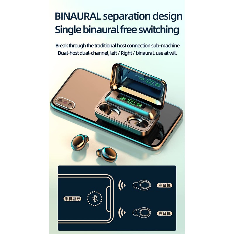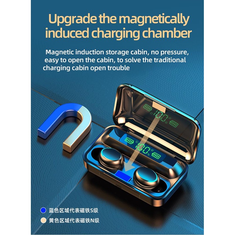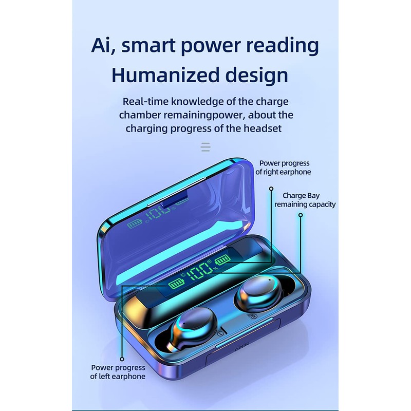 - LED POWER DISPLAY: The digital part of the LED display shows the percentage of battery remaining in the charging case in real time. The dual digital LED power allows you to view the consumption display of the charging case and earphone batteries at any time. With the display, you can easily understand the best time to charge and fully understand the power of wireless headphones.""
