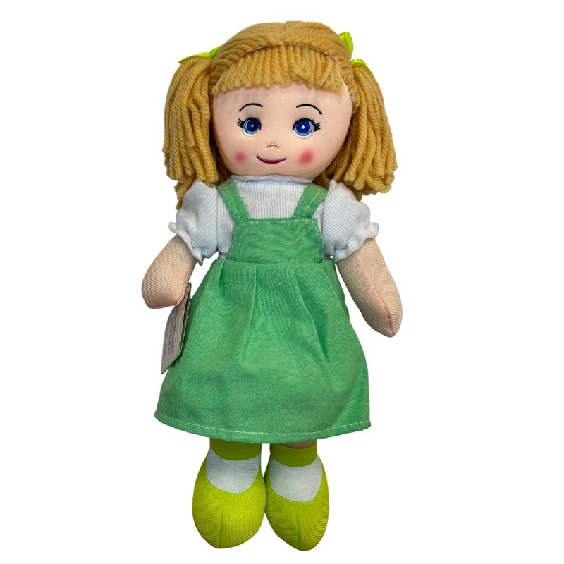 Rag Doll Large 40 cm in Cloth Cloth Doll with Braids and Dress Lily Doll Soft and Safe Doll with Wool Braids, Assorted Colours Random Colour 40 cm Soft Cloth: This 40 cm high cloth doll is perfect for children of all ages. thanks to its large format, the soft texture and the quality of the materials. Made of soft and delicate fabric, the doll is ideal for hugs and moments of play, promoting a sense of comfort and security. The generous size makes it a perfect gift to make any child feel special. SAFE AND SUITABLE FOR 1 YEARS OLD - This large rag doll has been designed with safety in mind. It is free of small removable parts, ideal for even the smallest children (1 year and above), reducing the risk of choking. Made of high quality fabrics and comply with safety regulations, this cloth doll provides a serene and safe playing experience. Doll with wool braids: the Lily doll is equipped with cute wool braids, an adorable detail that captures children's attention and stimulates their imagination. The wool hair is soft and safe to the touch, and the braids design gives the doll a unique and lovable style, perfect for developing children's aesthetic sensitivity. Assorted colours and random colour for surprises with every purchase: each doll comes in assorted colors, randomly chosen to make each doll a unique surprise. Bright and cheerful clothes, this rag doll stimulates children's color perception and easily adapts to any style and preference of the child. Soft and safe doll, ideal for play and rest: our Lily cloth doll, made from soft and safe fabrics, can be safely hugged and put in contact with the face and mouth. Designed to accompany your baby at all times, from sleep to play, this rag doll offers a tactile experience that helps calm and relax. PERFECT BIRTHDAY OR CHRISTMAS GIFT FOR BOYS AND GIRLS - Due to its quality and affectionate design, this large cloth rag doll is a perfect gift for special occasions such as birthdays, Christmas or other celebrations. It is a safe, educational and versatile toy, able to accompany your child as they grow up from early years to school age.