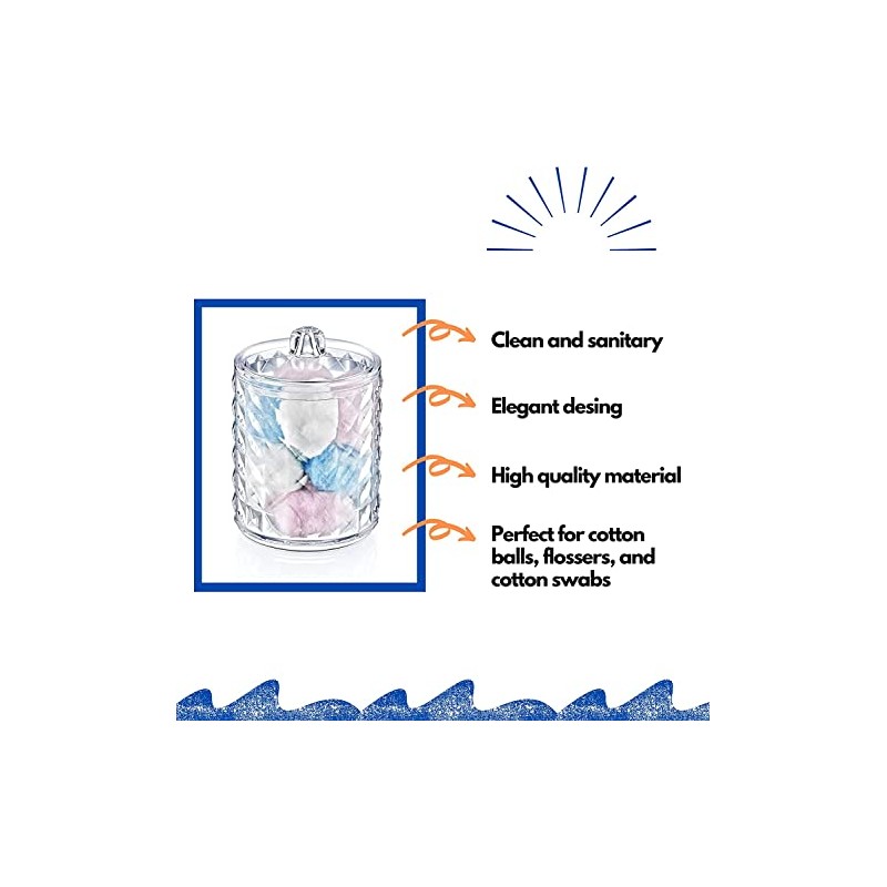 Generisch Cotton Swab Holder Diamond Design Acrylic for Floss Bath Salt Makeup Bathroom Organizer Storage Dispenser 2 Pack