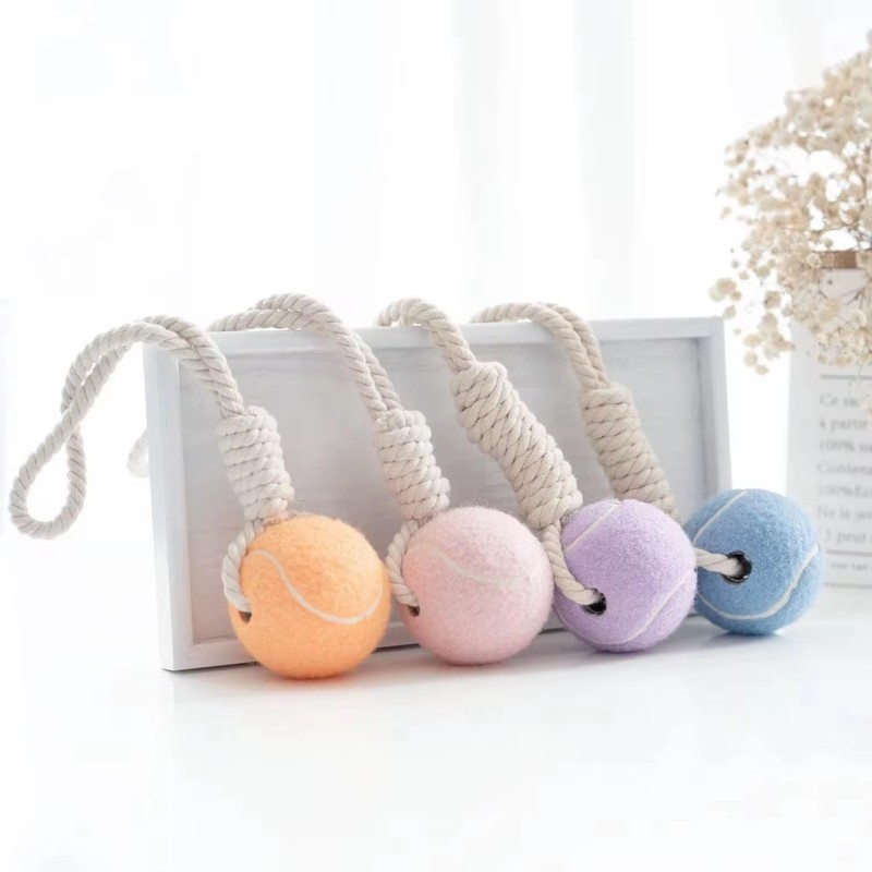 Generisch Dog Toy with Rope and Tennis Ball - Robust and Colourful, for Throwing and Tug Games (Orange)