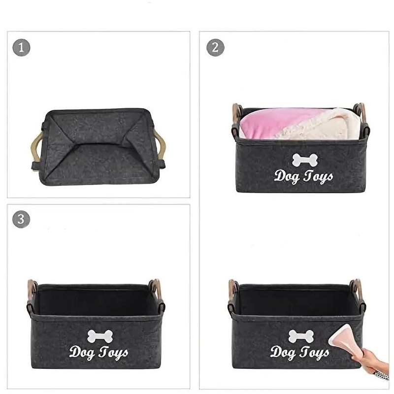 - 1:Grey Felt Storage Basket - Perfect for organizing pets at its best! Perfect for dry dog treats, leashes, collars, toys, blankets, outfits, grooming accessories and more