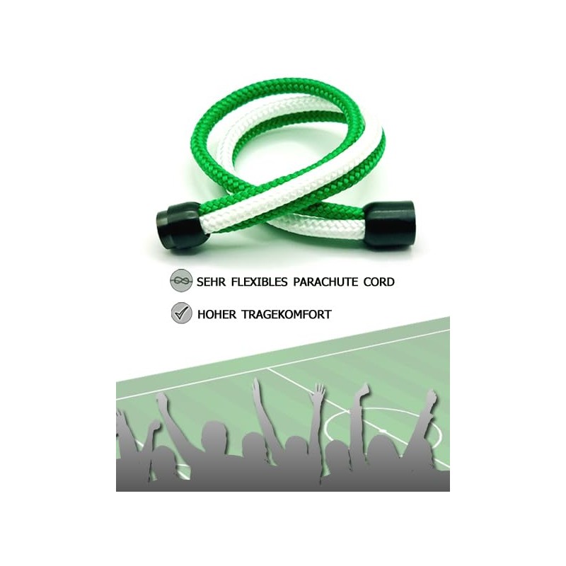 Erlebe mit dem JoJewelry Fan-Armband mehr als nur ein Accessoire – es ist dein treuer Begleiter durch jede Saison, jedes Turnier und jeden Moment, der deine Leidenschaft für den Sport lebendig hält. Anders als kurzlebige Silikonbänder, die schnell reißen oder ihre Farben verlieren, steht unser handgefertigtes Paracord-Armband für dauerhafte Qualität und Beständigkeit. Gefertigt aus besonders robustem, wasser- und schmutzresistentem Paracord Nylon, trotzt es Wind und Wetter, Schweiß und Schmutz. Selbst nach intensiven Spielen oder langen Festivals lässt es sich mühelos per Handwäsche reinigen und sieht aus wie neu – immer bereit, deine Farben stolz zu tragen. Das anschmiegsame, leichte Design sorgt für höchsten Tragekomfort, den du den ganzen Tag kaum spürst. Der sichere Edelstahl-Magnetverschluss verbindet sportliche Eleganz mit praktischer Handhabung und hält das Armband fest an deinem Handgelenk, egal wie wild das Spiel auch wird. Handgefertigt in Deutschland mit viel Liebe und Sorgfalt, spiegelt jedes Armband unsere Leidenschaft für Qualität wider – ein Schmuckstück, das du nicht nur tragen, sondern fühlen kannst. Kaufe es für dich selbst oder verschenke es an Freunde und Familie – dank der schönen Geschenkbox ist es das perfekte Präsent, um deine Unterstützung stilvoll zu zeigen. Setze ein Zeichen für deine Mannschaft, deine Stadt, dein Team – mit einem Armband, das so beständig ist wie deine Leidenschaft.