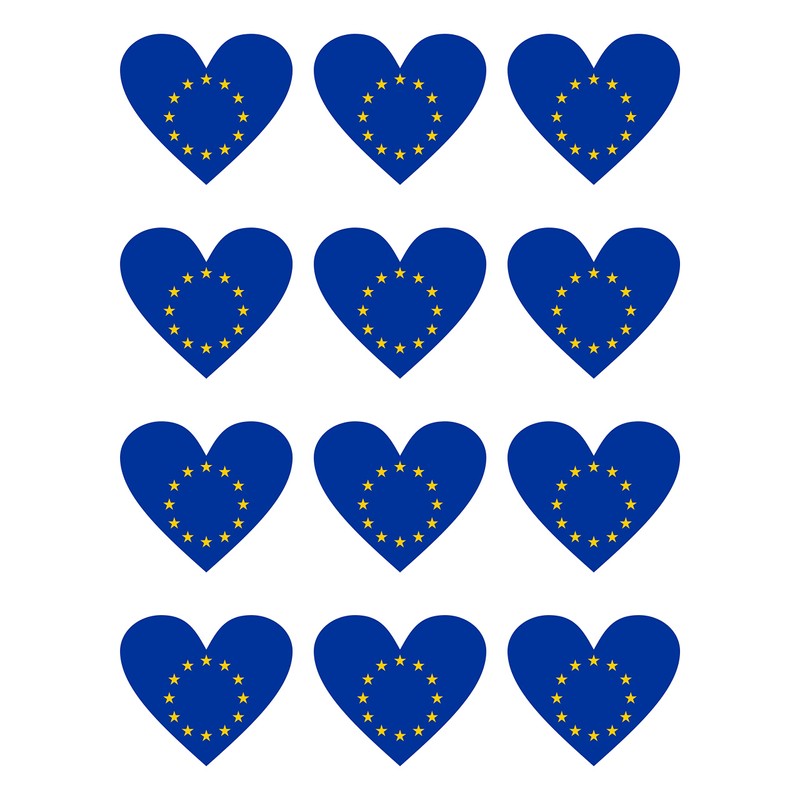 Pack of 12 stickers Europe heart, weatherproof and UV protection, set.