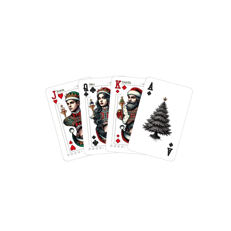 Experience the festive magic with the Christmas edition of our high-quality playing cards. This card set consists of 54 individually designed bridge cards in a unique Christmas design that makes every round a festive pleasure. Each card has been lovingly designed with classic Christmas elements such as Santa, Christmas trees and sparkling ornaments to capture the festive mood perfectly. High-quality workmanship guarantees durability and durability - ideal for frequent use during the holidays. Whether at family evenings, with friends or as a fun pastime after the banquet, these cards will add fun and Christmas cheer to any home. Thanks to their compact bridge size and premium quality, the cards are suitable for a variety of games such as bridge, poker or skat. In addition, they make great festive decorations or as a creative gift for card game lovers and Christmas fans.