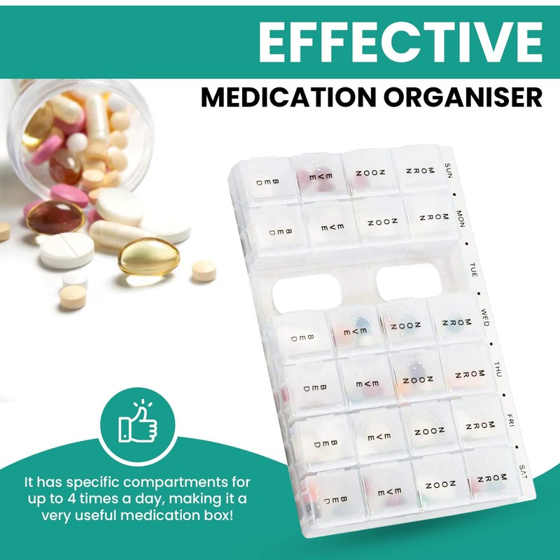 • ✅ Four compartments per day. - Unlike most pill boxes 7 days 1 time a day, the Generise pill dispenser has 7 days not only one single compartment per day or even two compartments for morning and evening. It has special compartments for up to 4 times a day, making it a very useful medicine box.
