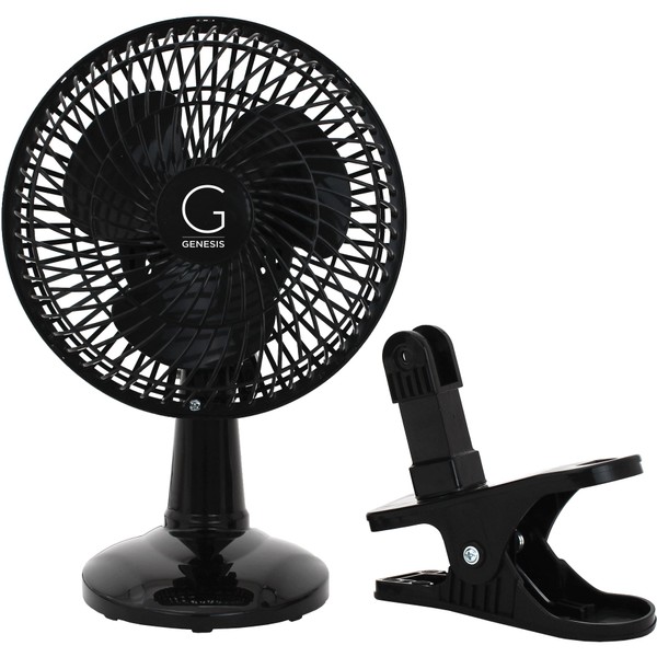Genesis 6-Inch Clip Convertible Table-Top & Clip Fan Two Quiet Speeds - Ideal For The Home, Office, Dorm, More Black (A1CLIPFANBLACK