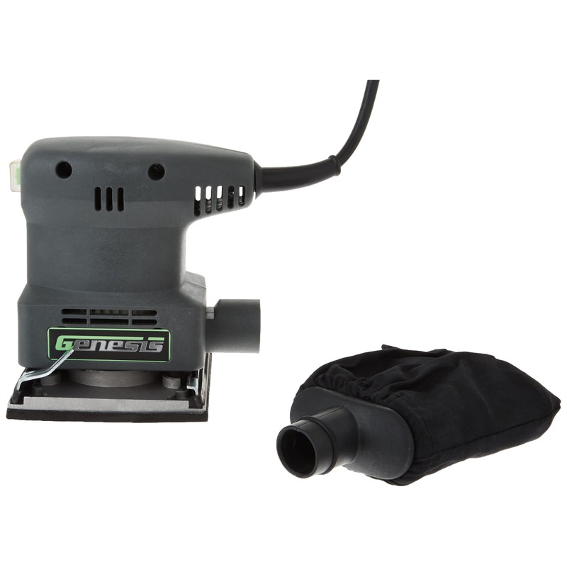 Genesis GPS2303 1/4 Sheet Palm Sander with Palm Grip, Dust-Protected Switch, Dust Bag, and Sandpaper Assortment