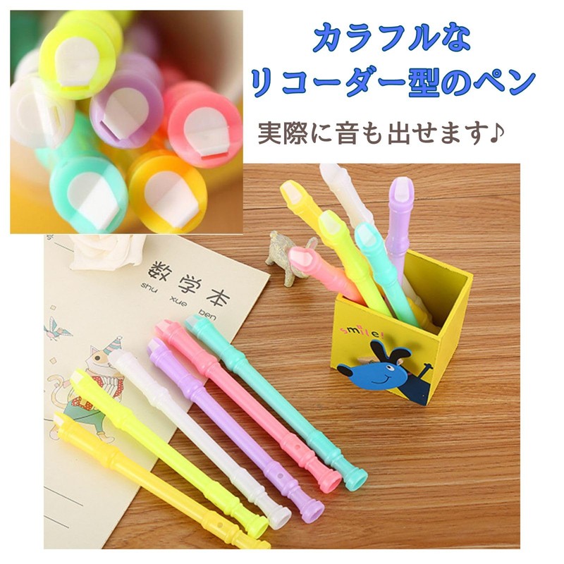 • (Cute Recorder Ballpoint Pens) This ballpoint pen features a recorder design that is used in elementary school music classes. Pop, colorful hues are cute and can also make real sounds