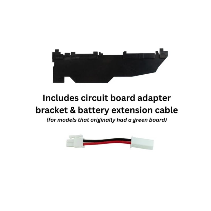 - Circuit board adapter bracket and battery extension cable included for models that originally had a green circuit board, Requires re-programming with the new board