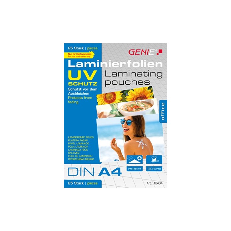 Genie Laminating Pouches DIN A4 with UV Protection, 125 Microns, UV-Resistant - Protects Against Radiation, Pack of 25