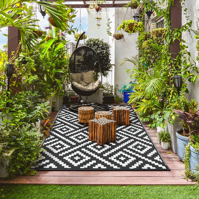 - 【WIDE USE & CUSTOMER SERVICE】GENIMO outdoor rugs are suitable for patio, camper, RV road trips, camping, balcony, picnic, porch, deck and garden. Multiple sizes for your choice (2.5'x8', 3'x5', 4'x6', 5'x5', 5'x8', 6'x9', 6' round, 8' round, 8'x10', 9'x12', 9'x18', 8'x16', 10'x14'). If you get any problem with our rugs, please contact us immediately, we will offer you a satisfactory solution.