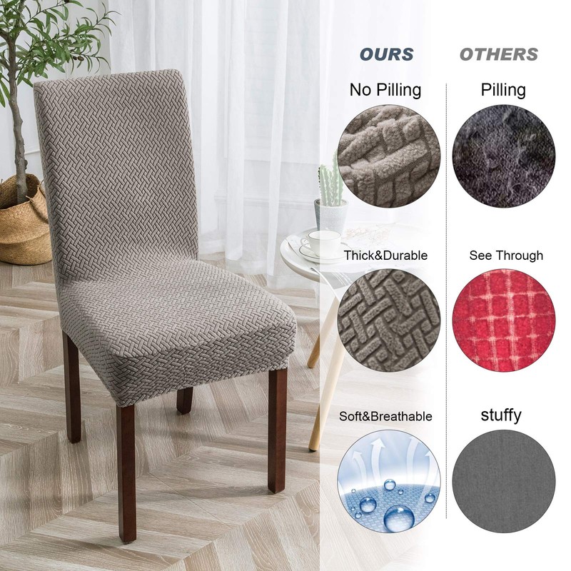 - Fashion Dining Chair Covers:More than the kitchen chair slipcovers with great quality that might come to mind,Genina dining chair covers are stylish design,Fashion long lattice fabric design,can transform your old chair to brand new and protect your chairs from scratches, spills,save you money by extending the life of your chair.