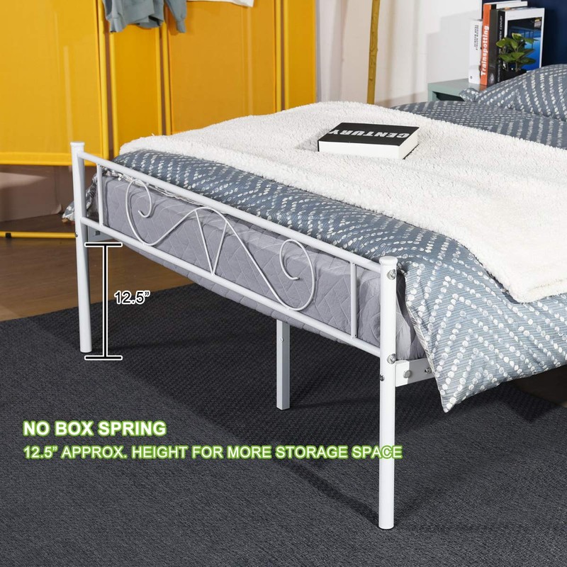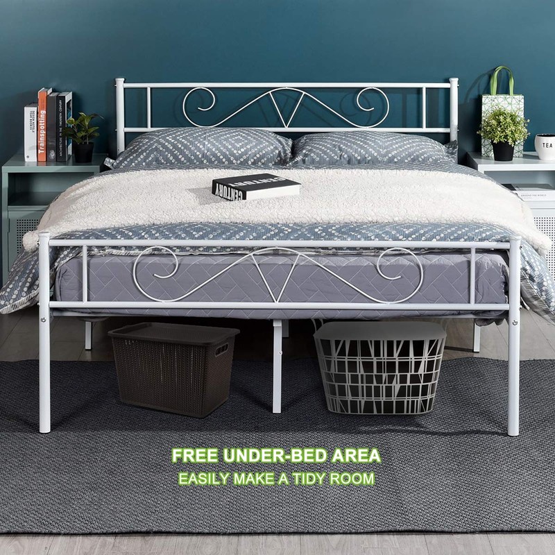 Geniqua Double Bed Queen Size Bed Frame Metal Platform Headboard Steel Foundation