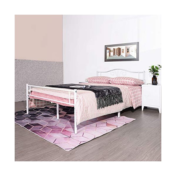 Geniqua Metal Bed Frame Queen Size Steel Foundation Retro Headboard Double Bed