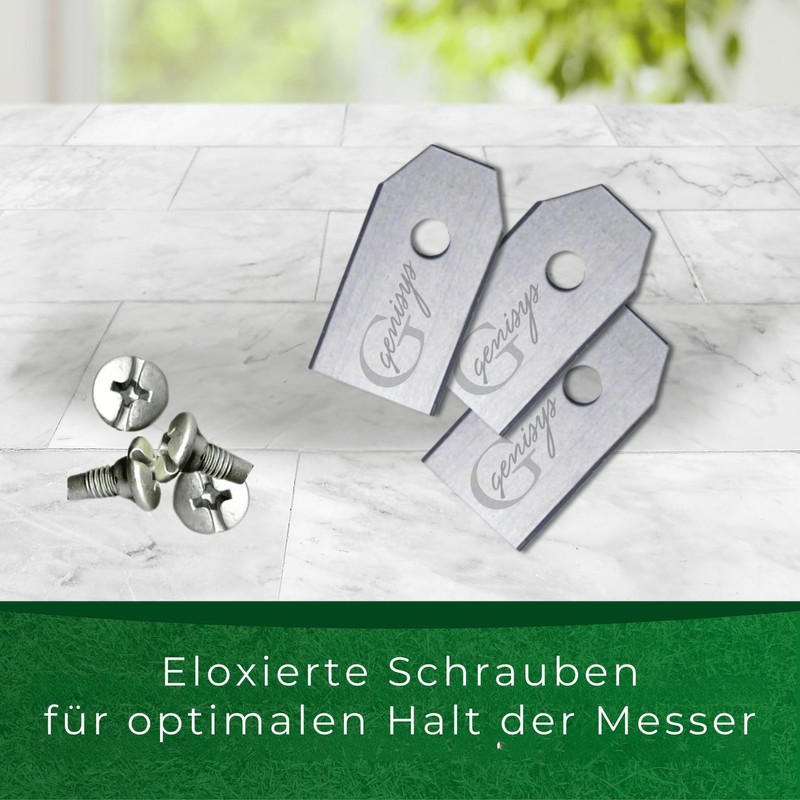 - Extra hardened knives from Genisys with screws in practical resealable packaging