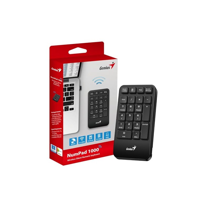 Genius NumPad 1000, Wireless Silent Numeric keypad, 2.4GHz, USB Receiver Plug and Play, slim and Prortable Design