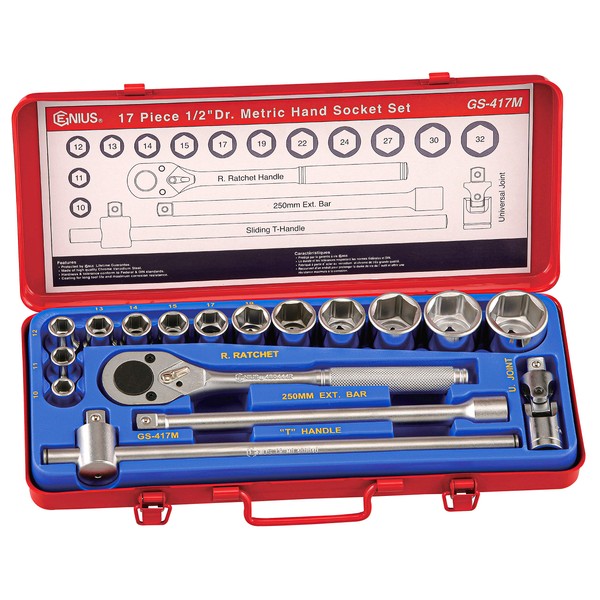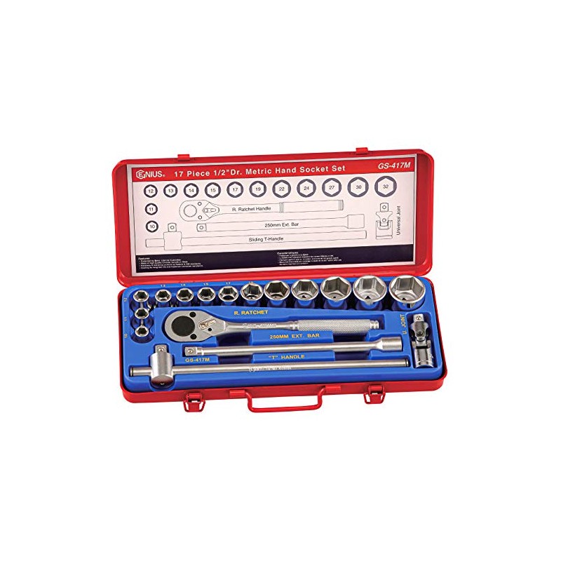 Genius Tools 17 Piece 1/2" Dr. Metric Hand Socket Set GS-417M