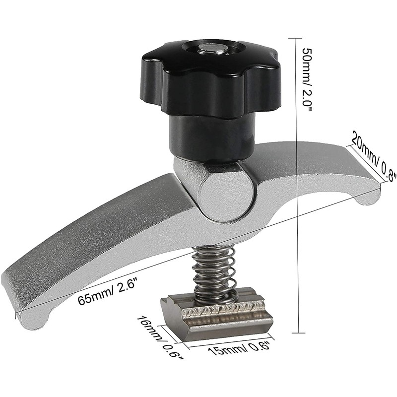 - Dimensions: This clamp is 65.3mm length x 20mm width x 50mm height. (2.57 x 0.79 x 1.97in)