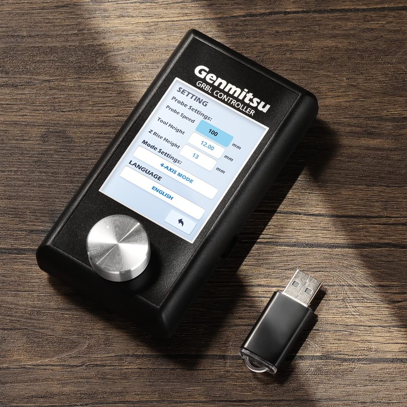 Introducing the Genmitsu CNC Router Offline Control Module designed for use with Genmitsu 4040 Pro. The ability to switch to 4-axis mode allows you to fully control all aspects of your CNC router (purchase with 4 axis for a bundle discount! ) No need to connect to computer. Control modules allow you to easily turn the spindle on and off or operate the Z-Axis Tool Set. Easy access and transfer files so you can quickly and efficiently launch and execute your projects. Say goodbye to complex control systems and ease of precision with the offline control module of Genmitsu CNC router machine.