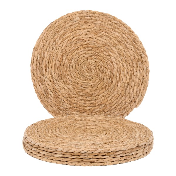 GENMOUS Woven Placemats Set of 8, 12" Round Placemats Natural Water Hyacinth Boho Placemats, Farmhouse Rattan Chargers for Dinner Plates, Rustic Braided Wicker Table Mats for Dining Table,Home,Wedding