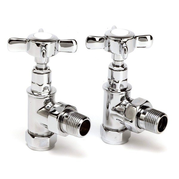 Made from solid brass and chrome plated to the highest standard, the Genoa traditional angled valve is perfect for any radiator or towel rail installation. Designed for use with 15mm pipework and to fit 0.5" BSP connections, they can be combined with a pipe reducer to fit 8mm and 10mm pipework. Pack includes 2x on/off valves with traditional style.