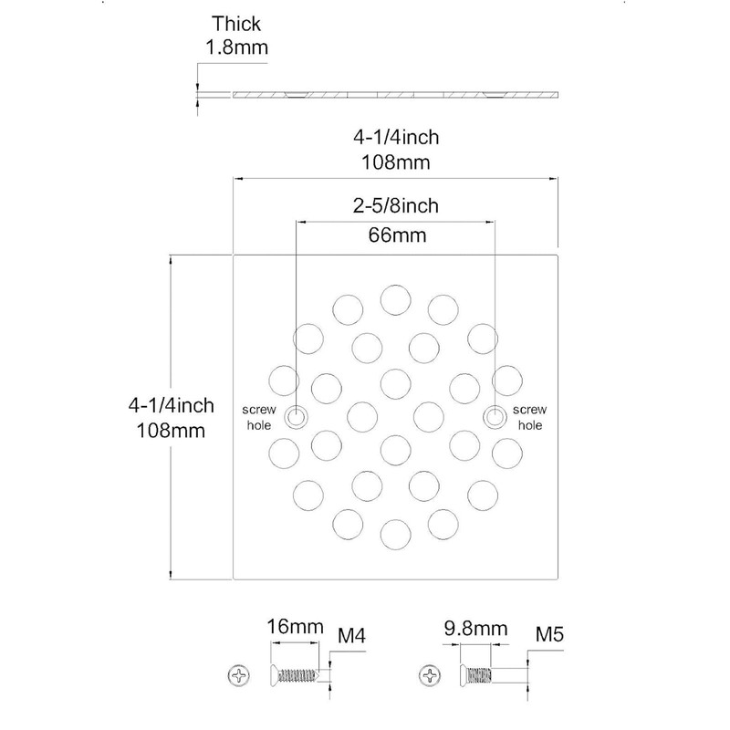 - O.D.4-1/4"Inch (108mm) Round Shower Drainer Cover Replacement, Screws are Included (18mm) Total Length.