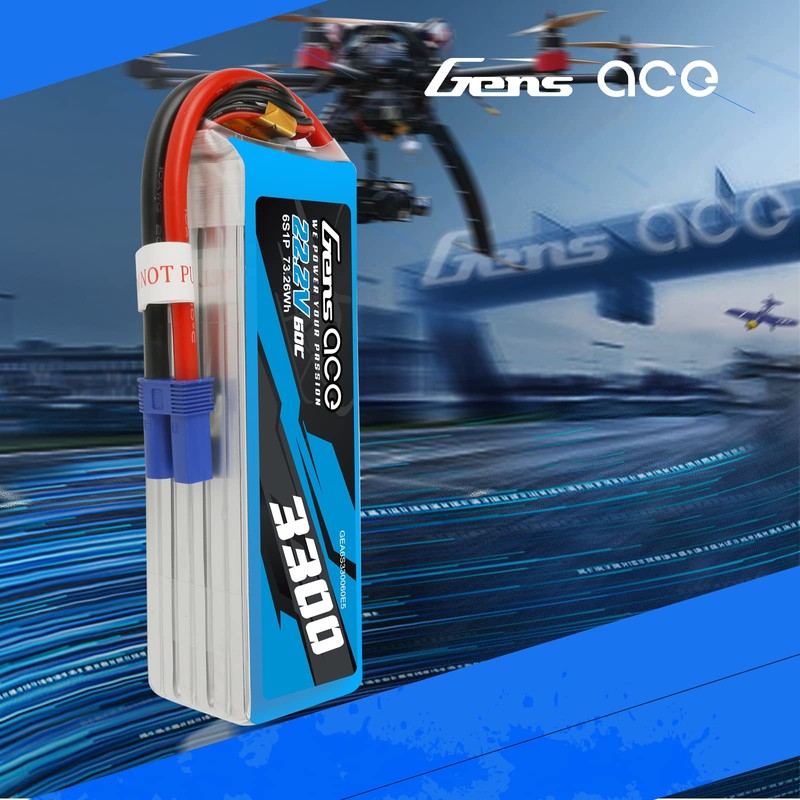 • Gens ace 22.2V 3300mAh Lipo battery Specification:Battery Voltage:22.2V;Configuration:6S1P;Capacity:3300mAh;Discharge:60C/120C;Plug:EC5 Plug.