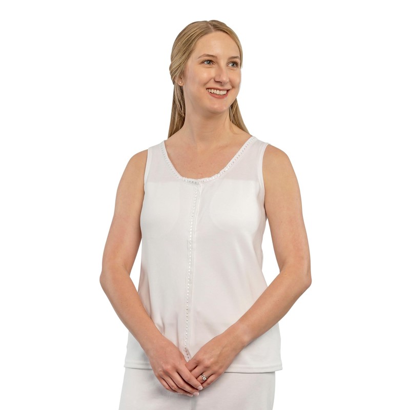 Gentle Touch Post Mastectomy Recovery Camisole- Includes Drain Pockets and Breast Forms White/White