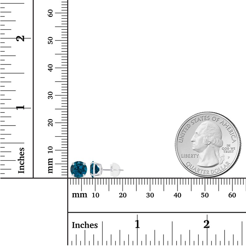 • London-Blue-Topaz: This 14K White Gold 6.00mm Round London Blue Topaz Stud Earrings features 2 gemstones with a total carat weight of 2.10 CTW.