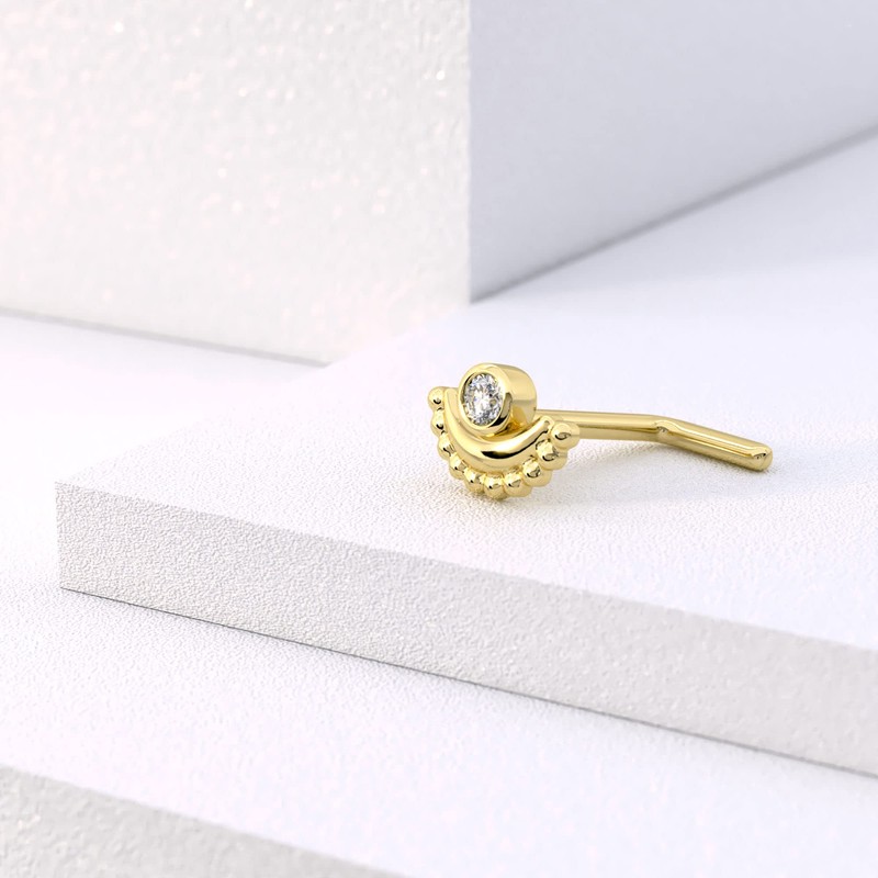 Genuine Diamond Mandala Nose Ring Stud, 14K Solid Gold Nose Pin Piercing, Indian Style L Shape Nose Stud, 20g, Handmade Jewelry By Umanative Design