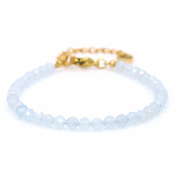 This bracelet is made of faceted aquamarine gemstone beads and an extension chain with a stainless steel lobster clasp. Thanks to the facet cut, the bracelet gets an enchanting sparkle and shine. It is a wonderful gift for your loved ones on special occasions such as birthdays, Valentine’s Day and Christmas. Or simply as a gift to yourself.