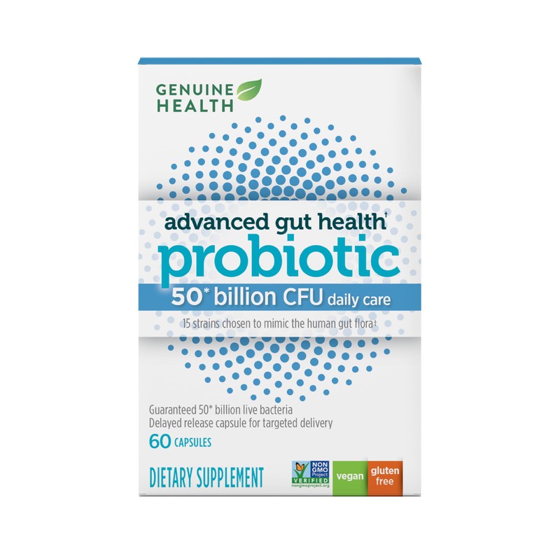 Genuine Health Probiotics, 50 Billion CFU, Daily Care, 15 Diverse Strains, Soy Free, Gluten Free, Vegan Delayed-Release Capsules for Advanced Gut Health (60 Count)